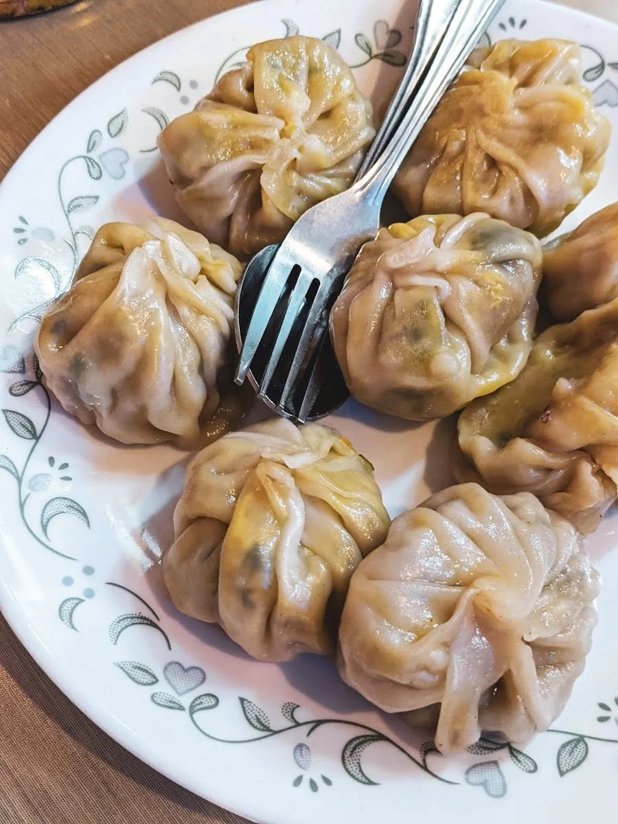 We had sel roti (a traditional ring-shaped sweet rice bread from Nepal) and some momos (Nepalese dumplings).